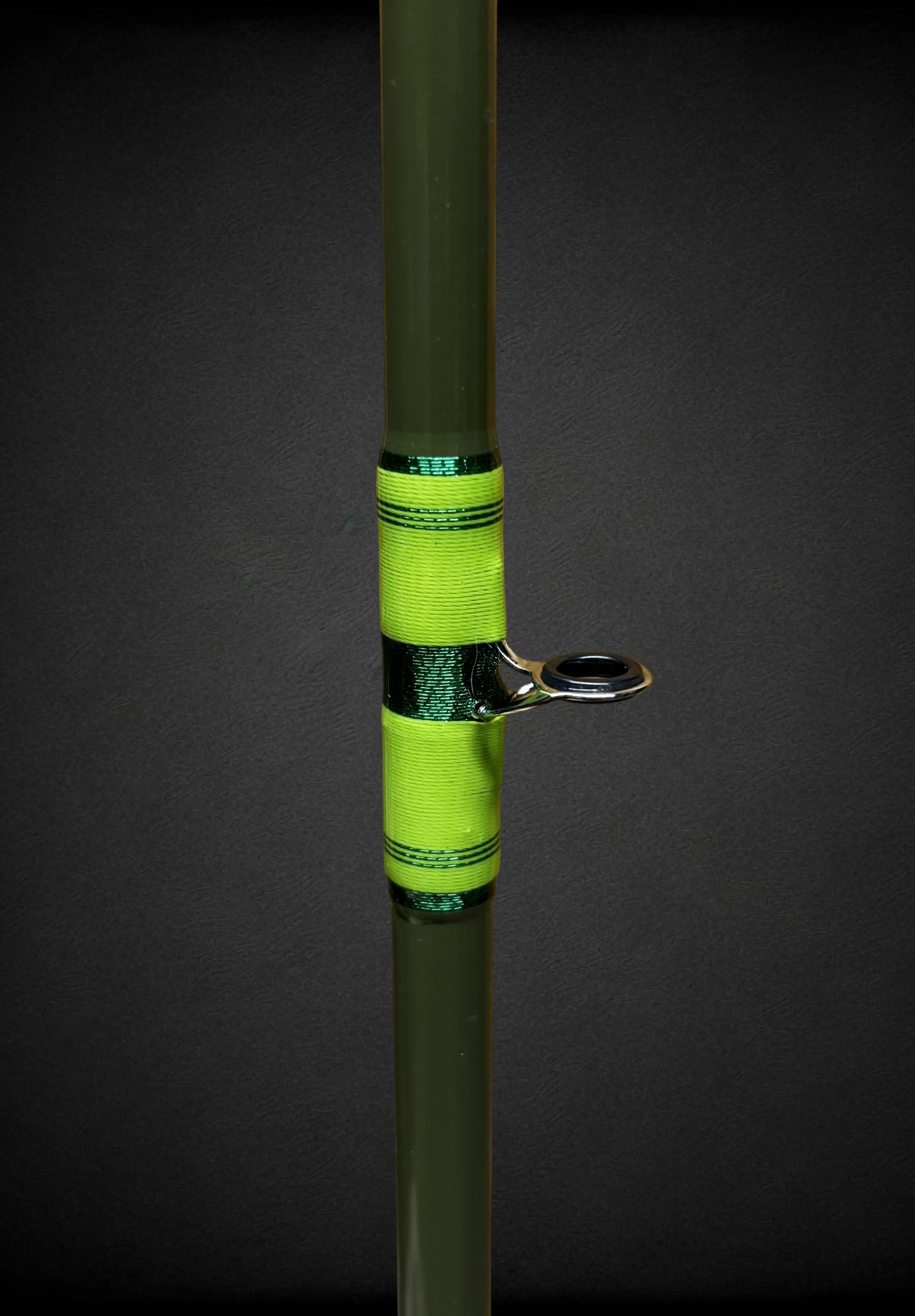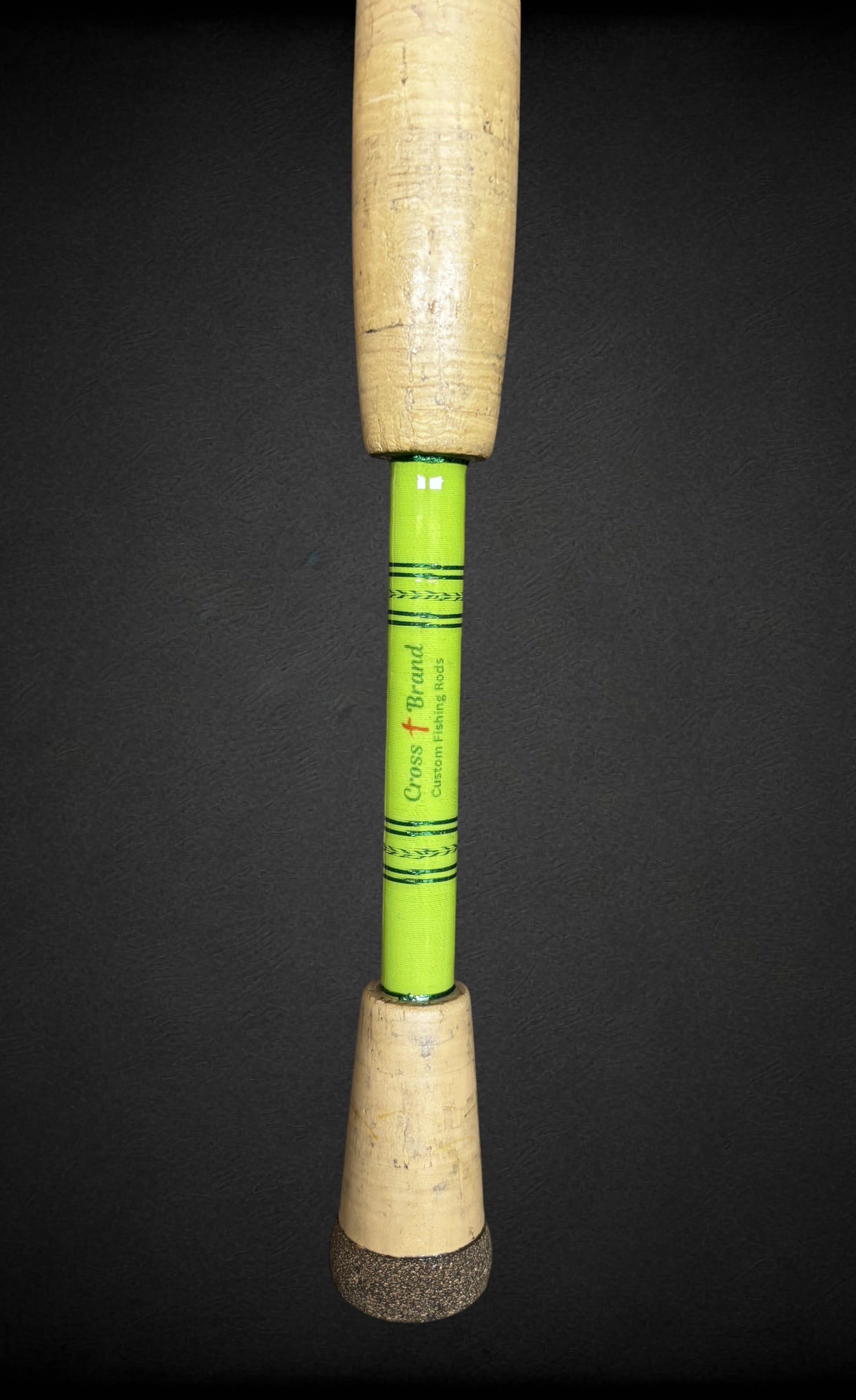 "Cross Brand" Custom Fishing Rod in the Theme Color of Green. Hand Crafted with Quality Components Selected just for this Rod. Built on a 7' St. Croix (TM) Carbon Fiber Rod Blank Medium Fast with American Tackle (TM) Guides, GAHO (TM) Reel Seat, and Premium Cork Grips. This is a "One of a Kind" Fishing Rod! It features a Woven Cross between the Split Grips and a Tiger Weave above the Hook Keeper.